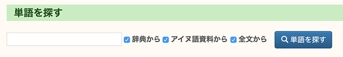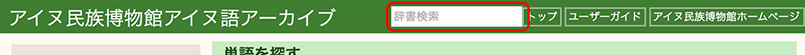 検索窓にアイヌ語、日本語の単語など、調べたい語を入れます。