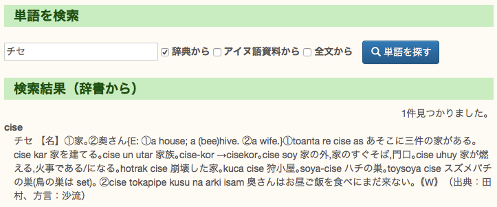 - 登録されているアイヌ語辞典の見出し語を検索します。